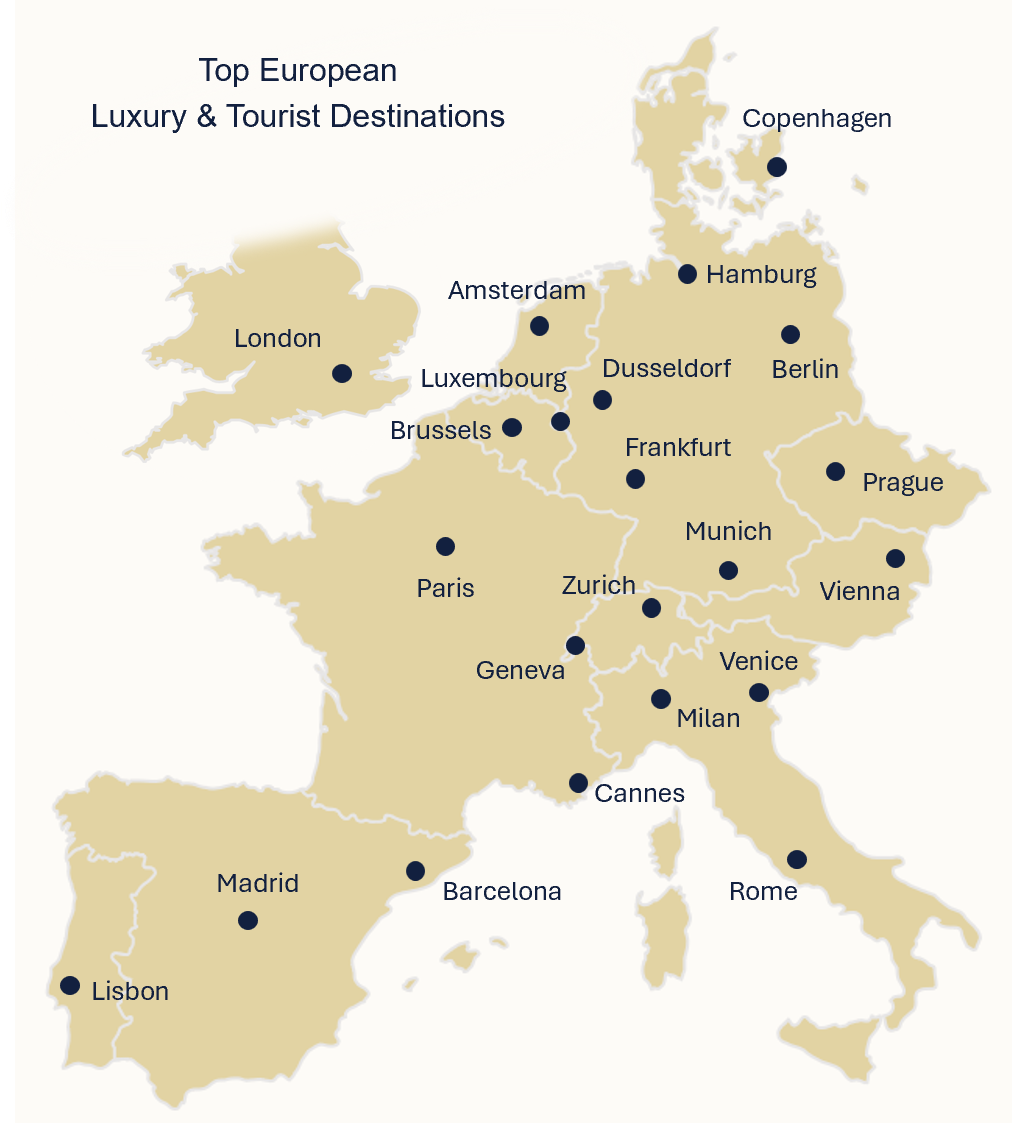 Allura Market Maps™ provide industry professionals with an up-to-date view of Europe’s prime high-streets, tracking retailer movements, occupancy patterns, and the positioning of leading luxury and international brands.